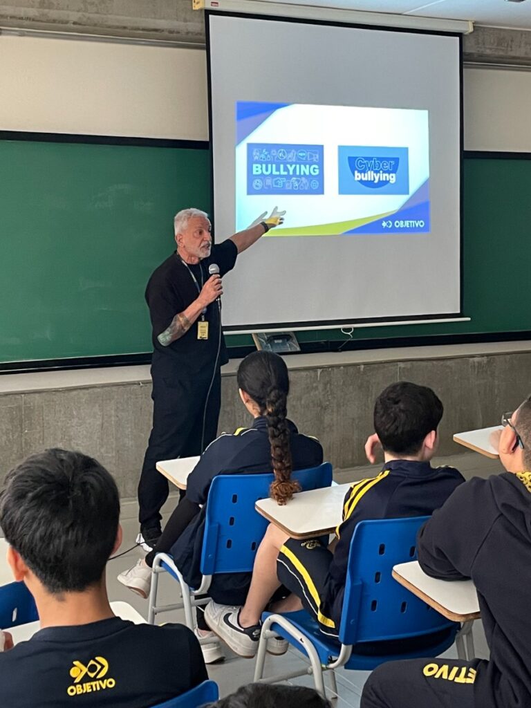 Mais do que reagir a situações, nossa missão é prevenir, orientar e conscientizar, formando cidadãos mais empáticos e preparados para conviver em sociedade. Na unidade de Praia Grande o professor José Roberto Chiarella falou com os alunos do anos finais trazendo reflexões e orientações sobre esse tema de muita importância.